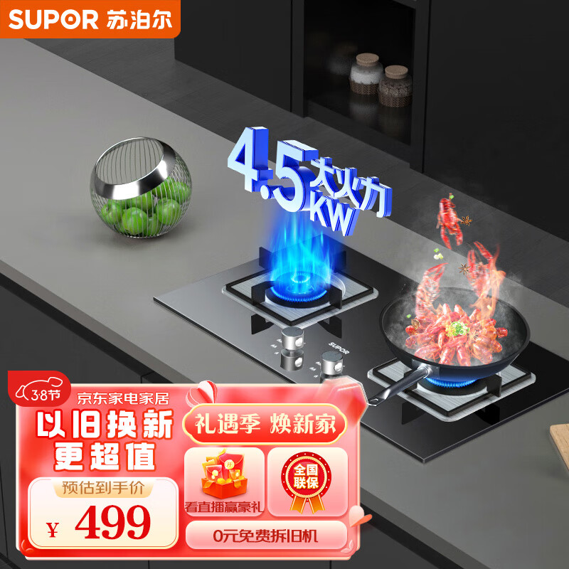 苏泊尔(SUPOR)燃气灶 天然气灶双灶具4.5kW大火力 钢化玻璃双灶台嵌两用燃气灶 猛火高效QB506天价格:549.00元!