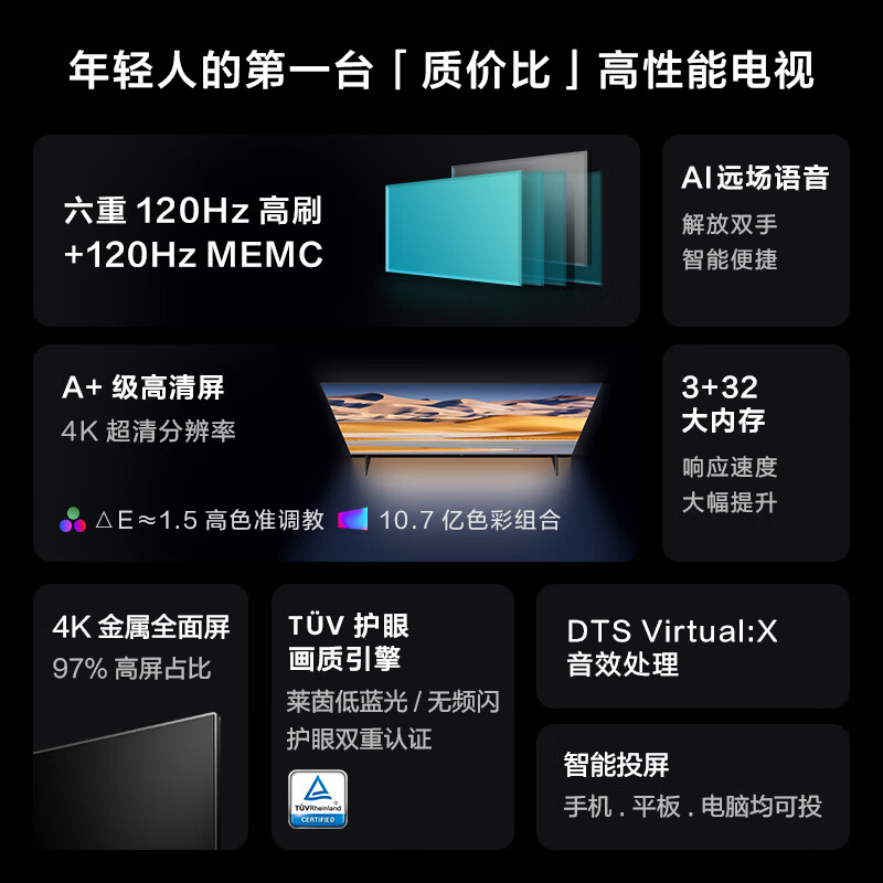 电视类型:智能电视,K歌电视,适老电视,游戏电视