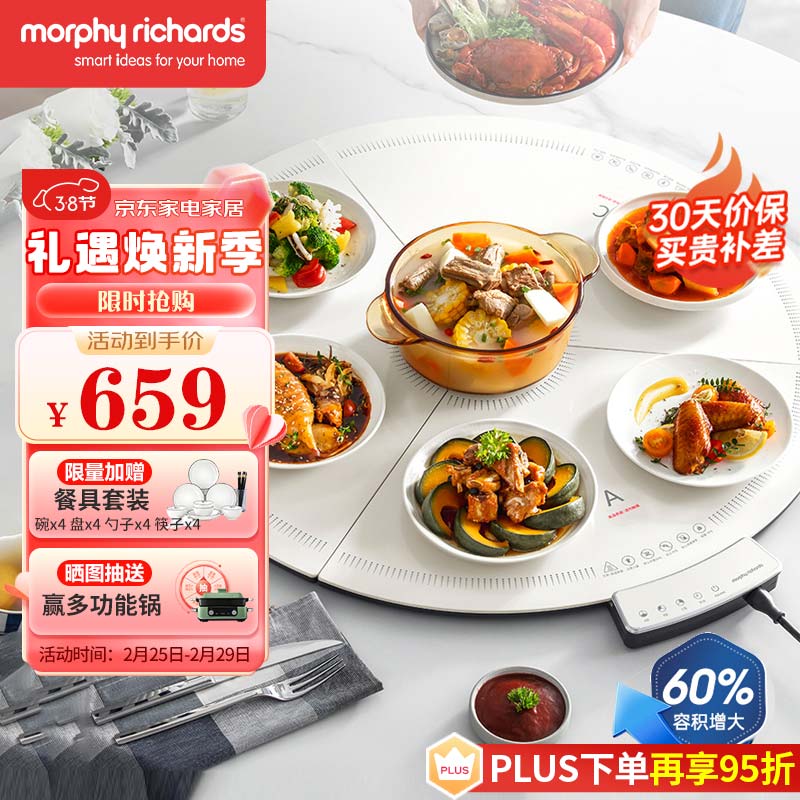 摩飞电器(Morphyrichards)折叠暖菜板 饭菜保温板热菜板加热桌垫 年货送礼赠老人送长辈 圆形饭菜保温板带解冻温奶MR8306价格:621.00元!