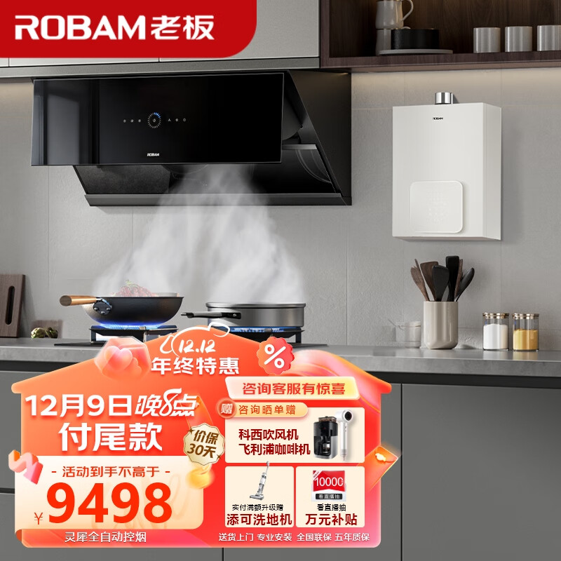 老板(Robam)灵犀抽油烟机厨房多件套 家用25风量侧吸智能变频烟机灶具燃气热水器29X8S黑+57B6DT+HD660A-16价格:9498.00元!