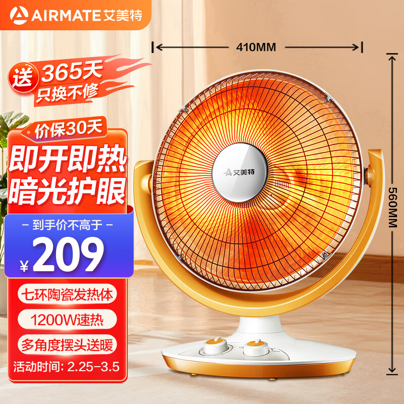 艾美特(AIRMATE)取暖器家用/小太阳/电暖器/电热炉/烤火炉/鸟笼取暖器 花篮式多角度调节定时远红外 HF12081T-W价格:169.00元!