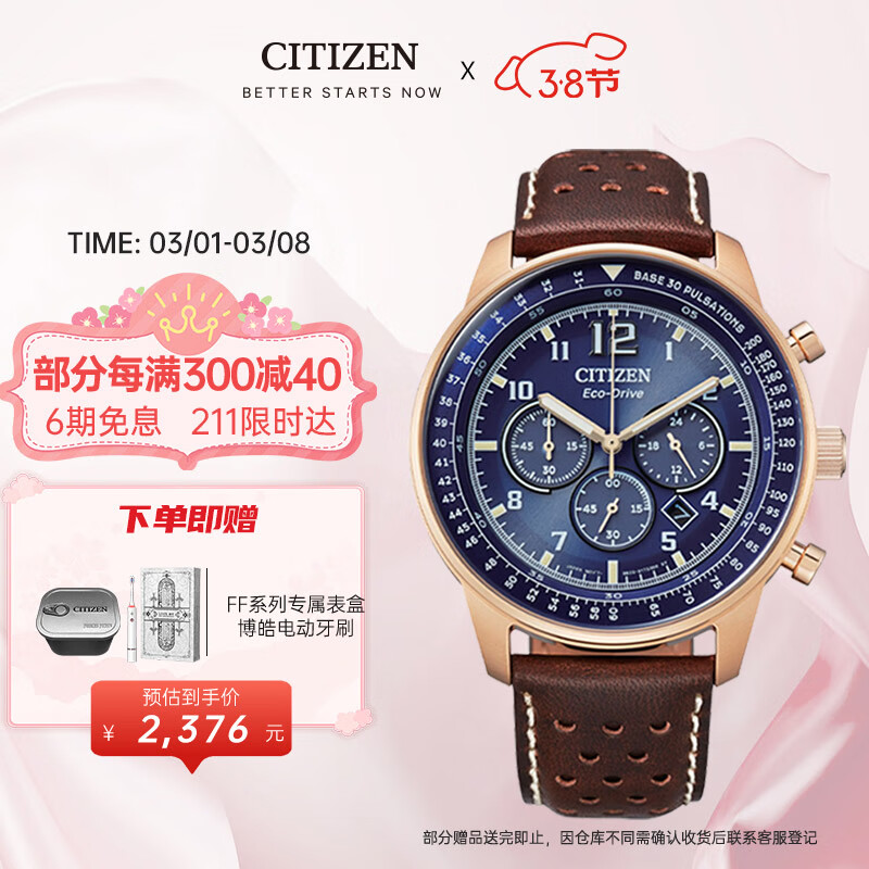 西铁城(CITIZEN)手表男日韩表FF系列光动能蓝盘皮带商务送礼物男友CA4503-18L价格:2576.00元!
