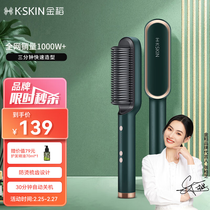 金稻直发梳夹板卷发棒内扣直板夹造型梳子 三分钟快速造型30秒速热恒温护发礼物女 KD380绿色 38节礼物价格:179.00元!