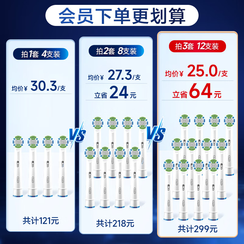 欧乐B电动牙刷头 成人精准清洁型4支装 EB20-4 适配成人D/P/Pro系列圆头 标准型软毛智能牙刷刷头价格:121.00元!
