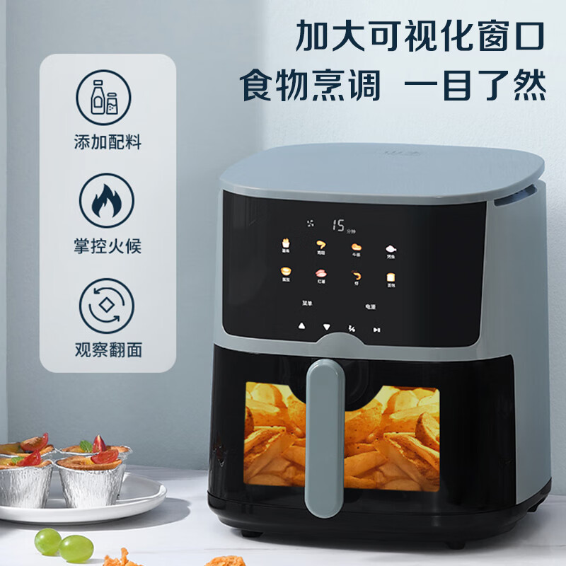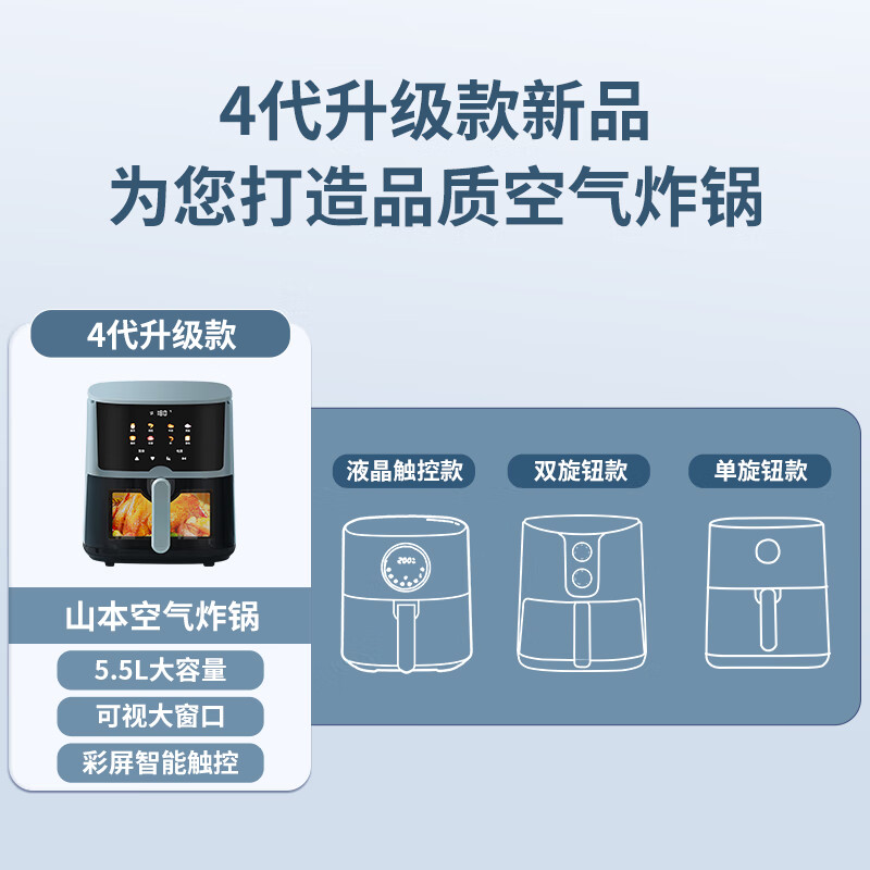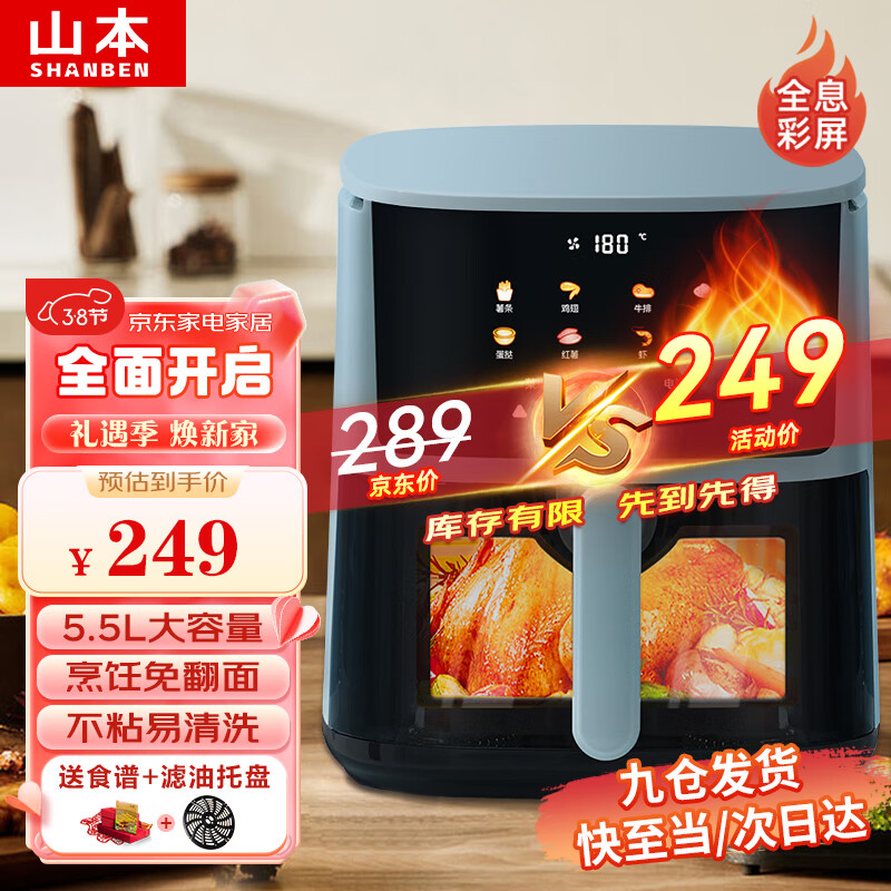 山本(SHANBEN)空气炸锅5.5L大容量不用翻面免全自动可视窗口透明触控电炸锅低脂多功能智能家用 HLVS价格:249.00元!