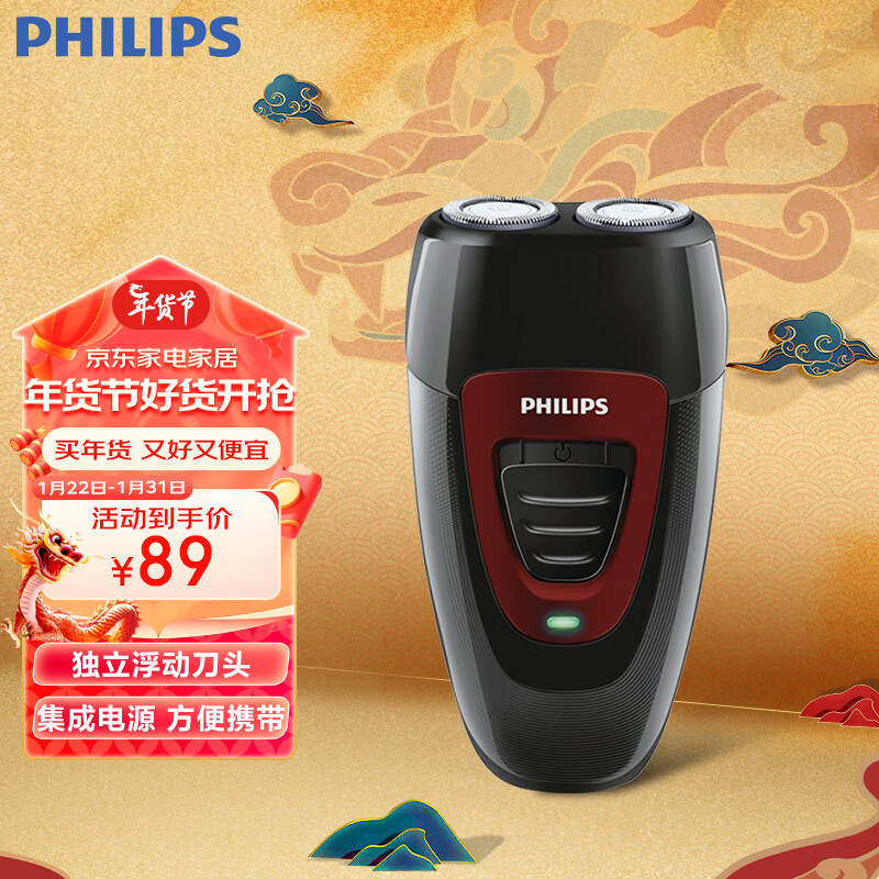 飞利浦(PHILIPS)电动剃须刀经典便携款 自动研磨刮胡刀胡须刀 新年礼物 送男友 送老公价格:89.00元!