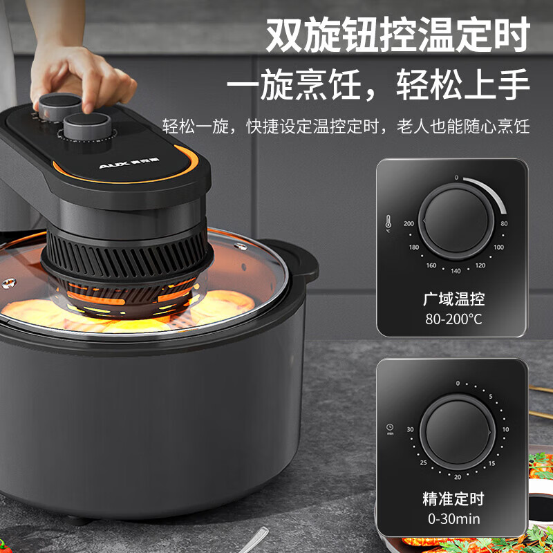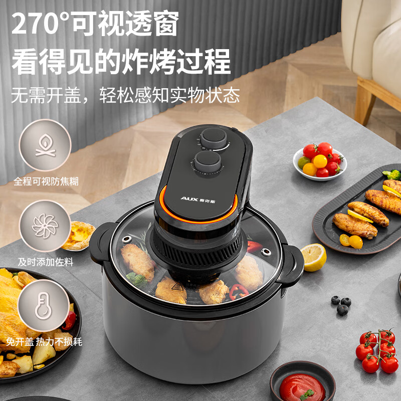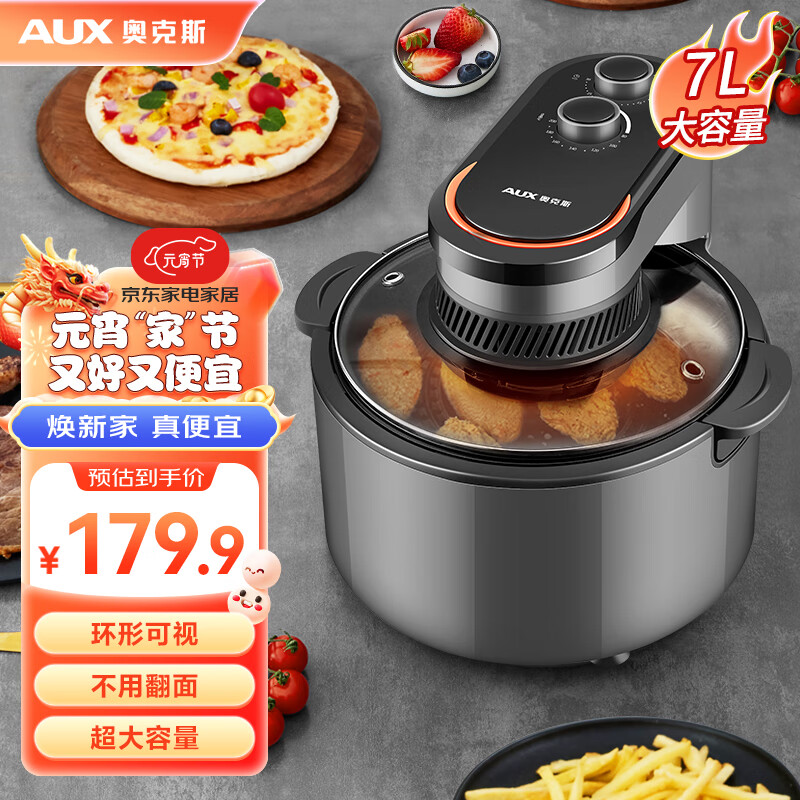 奥克斯(AUX)双旋钮空气炸锅 不用翻面 可视窗口7.0L大容量 多功能易清洗 【灰色】价格:179.90元!