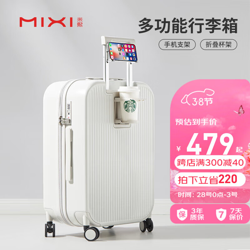 米熙多功能拉杆箱子行李箱大容量26英寸学生旅行箱男密码箱女烟白90价格:699.00元!