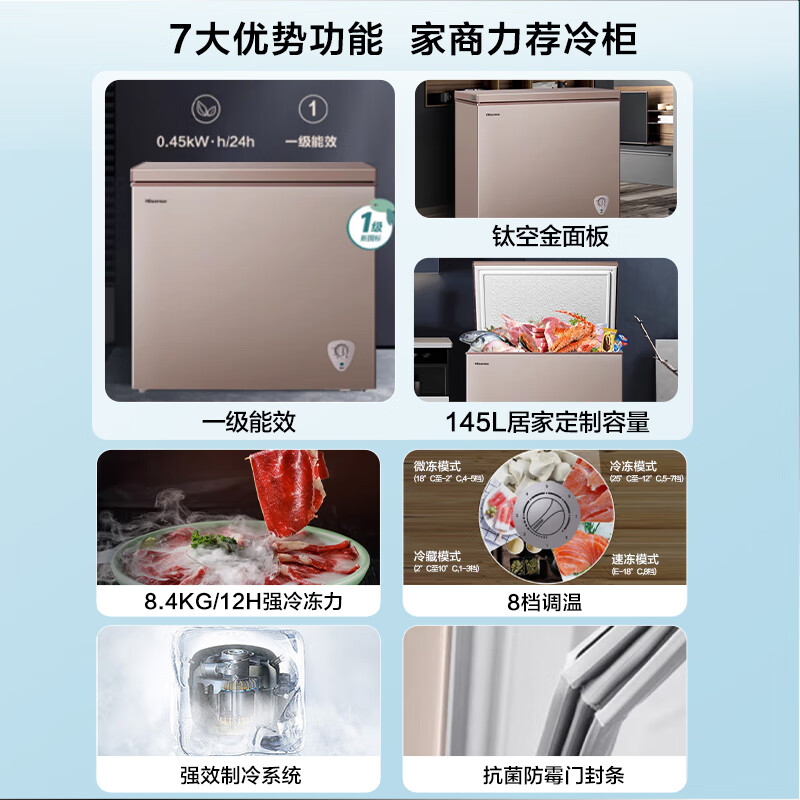 海信(Hisense)145升冰柜家用小型囤货冷柜 一级能效冷藏柜冷冻柜单温 母婴母乳小冰箱BD/BC-145NUD以旧换新价格:699.00元!