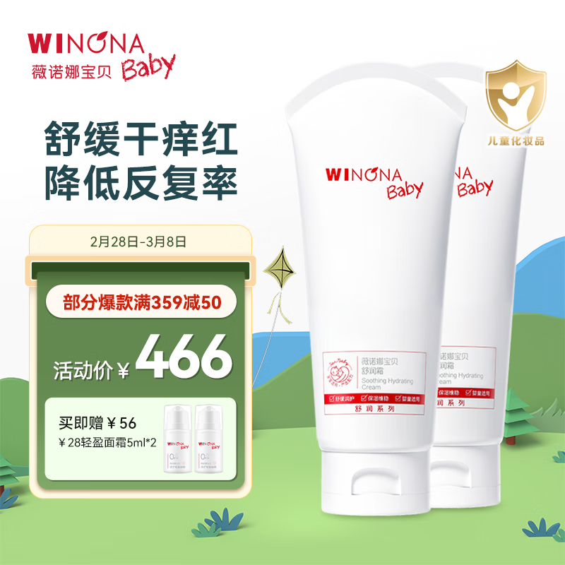 薇诺娜宝贝舒润霜 婴幼儿宝宝护肤缓解干痒红儿童补水保湿面霜200g*2囤货装价格:516.00元!