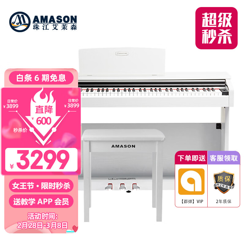 艾茉森(Amason) 珠江钢琴 考级电钢琴88键重锤数码电子钢琴专业成人儿童AP230价格:3899.00元!