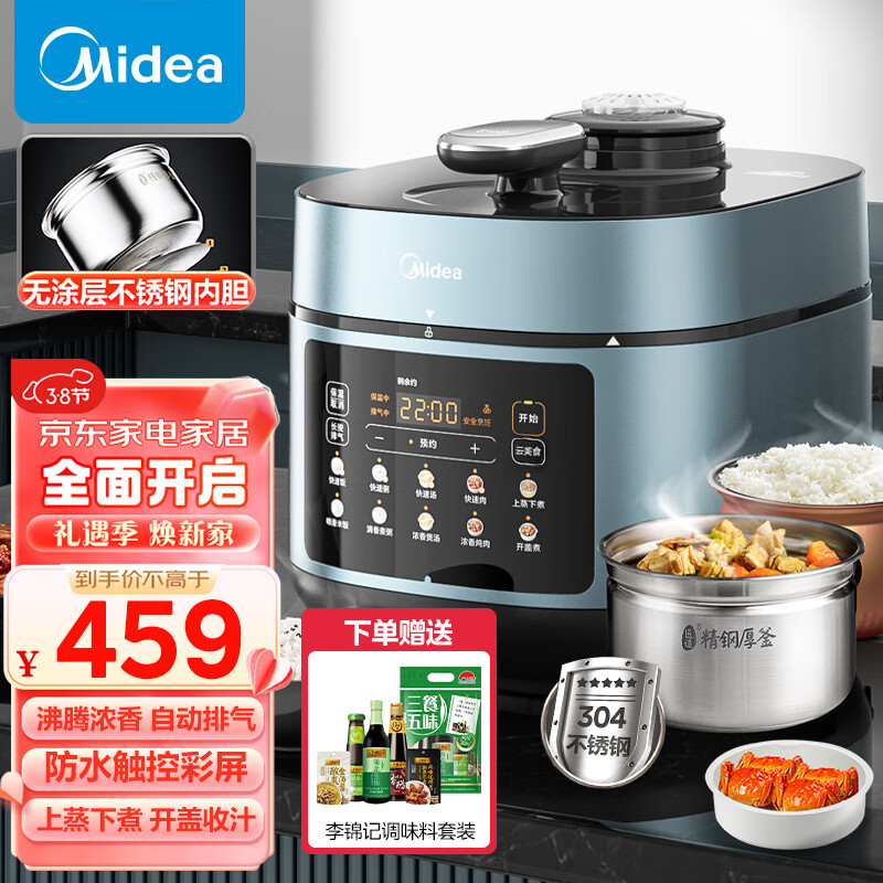 美的(Midea)浓香系列 全自动智能家用5L电锅0涂内胆自动排气上蒸下煮易清洁高压电饭煲MY-C552N(2-10人食)价格:519.00元!