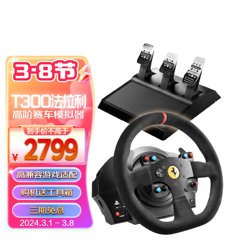 图马思特(THRUSTMASTER)T300法拉利版赛车游戏方向盘赛车模拟器GT7神力科莎尘埃拉力赛兼容PC/PS4/PS5平台价格:2799.00元!