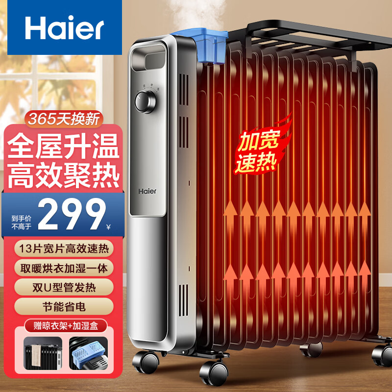 海尔(Haier)取暖器电油汀家用速热暖气片浴室防水电暖气加宽13片全屋取暖电暖器片节能电热油丁 HNY-1330A价格:309.00元!