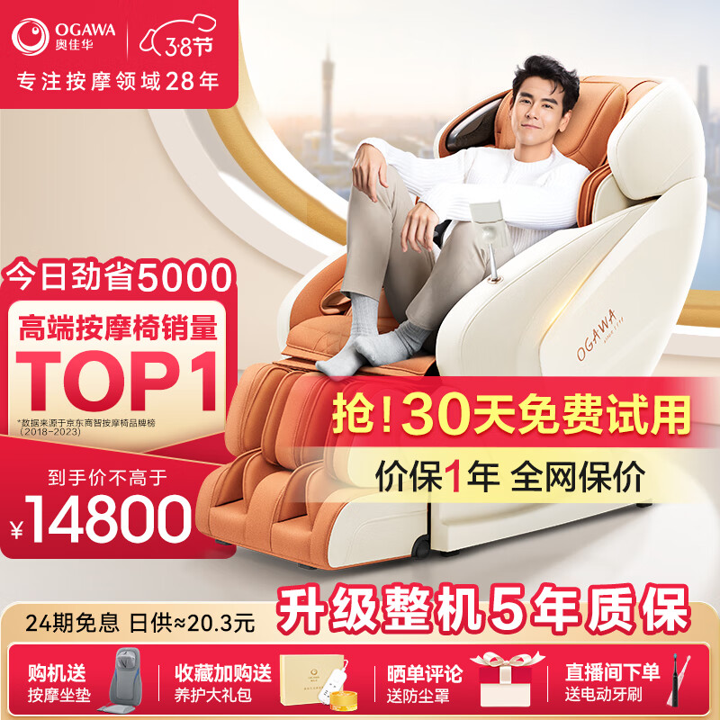 奥佳华(OGAWA)家用按摩椅太空舱全身全自动智能电动按摩沙发零重力3D机芯中医养生老人豪华头等舱7808知芯大师S+ 骄阳橙价格:19800.00元!