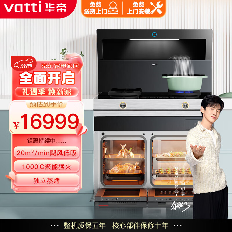 华帝(VATTI)集成灶蒸烤炸一体集成灶 家用蒸烤独立一体机 集成灶一体式 挥手智控 智能APP联控 PY55Z天然气价格:16999.00元!