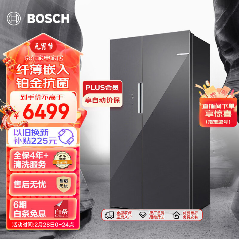 博世BOSCH【灰阶·纤薄玻璃门】502升家用超薄变频大容量风冷无霜对开门嵌入式冰箱以旧换新 K1VA50659C价格:7199.00元!