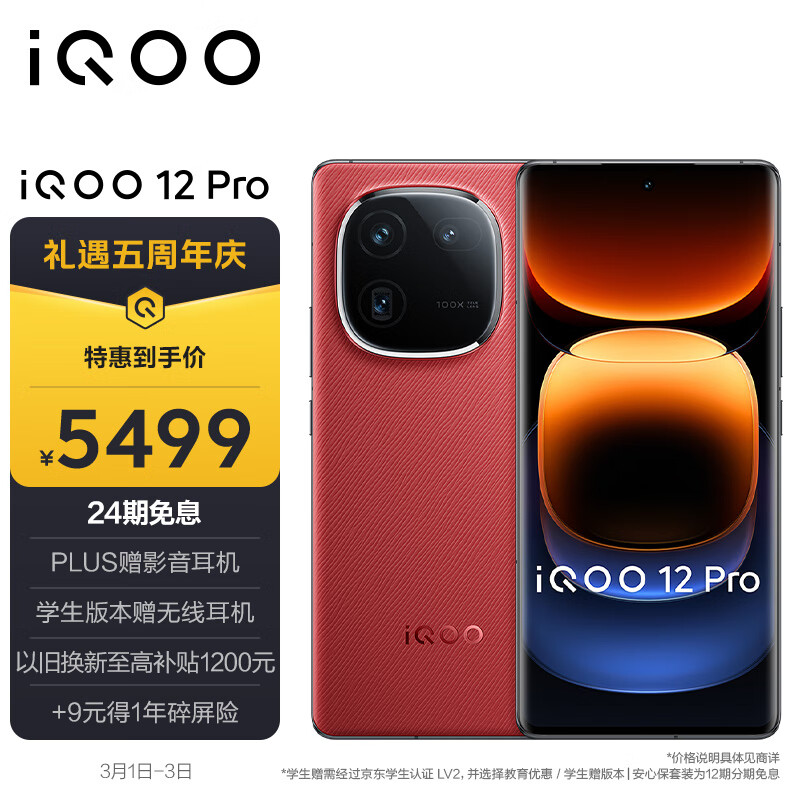 vivo iQOO 12Pro 16GB+512GB燃途版 2K E7 144Hz屏幕 大底主摄潜望式长焦 第三代骁龙 8 手机价格:5499.00元!