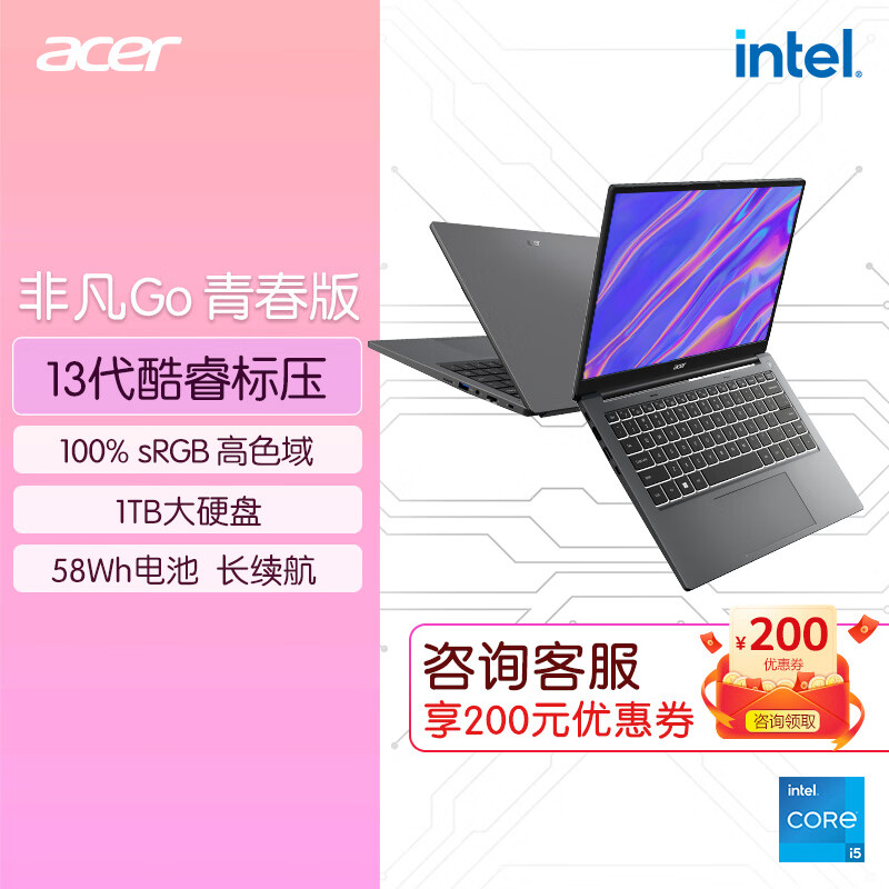 宏碁(acer)非凡Go青春 13代酷睿标压高性能轻薄本 14英寸办公笔记本电脑大学生 (i5-13500H 16G 1T 高色域)灰价格:3999.00元!