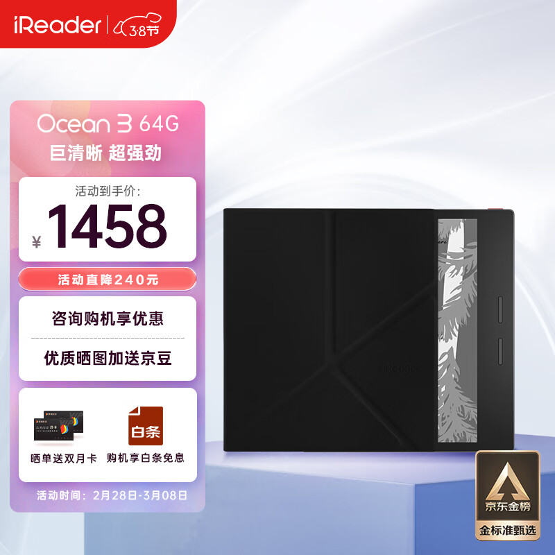 掌阅iReader Ocean3 7英寸电子书阅读器墨水屏电纸书电子纸便携阅读看书学习64GB儒雅黑支架保护套装价格:1458.00元!