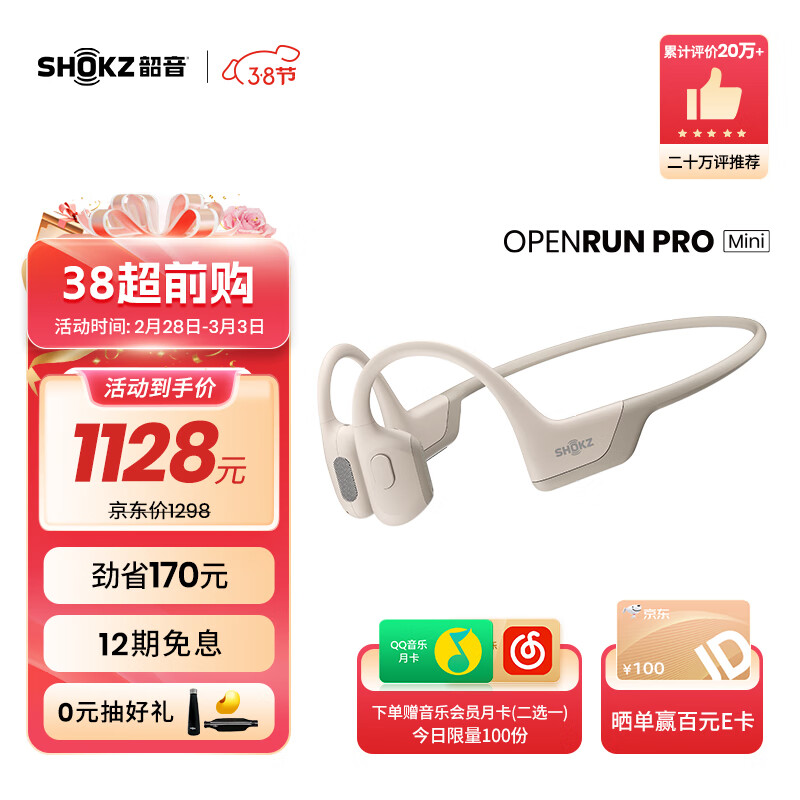 韶音(SHOKZ)OpenRun Pro骨传导蓝牙耳机开放式耳机运动无线耳骨传导耳机跑步骑行不入耳佩戴S810/S811 【适合女士和青少年使用】mini黄价格:1128.00元!
