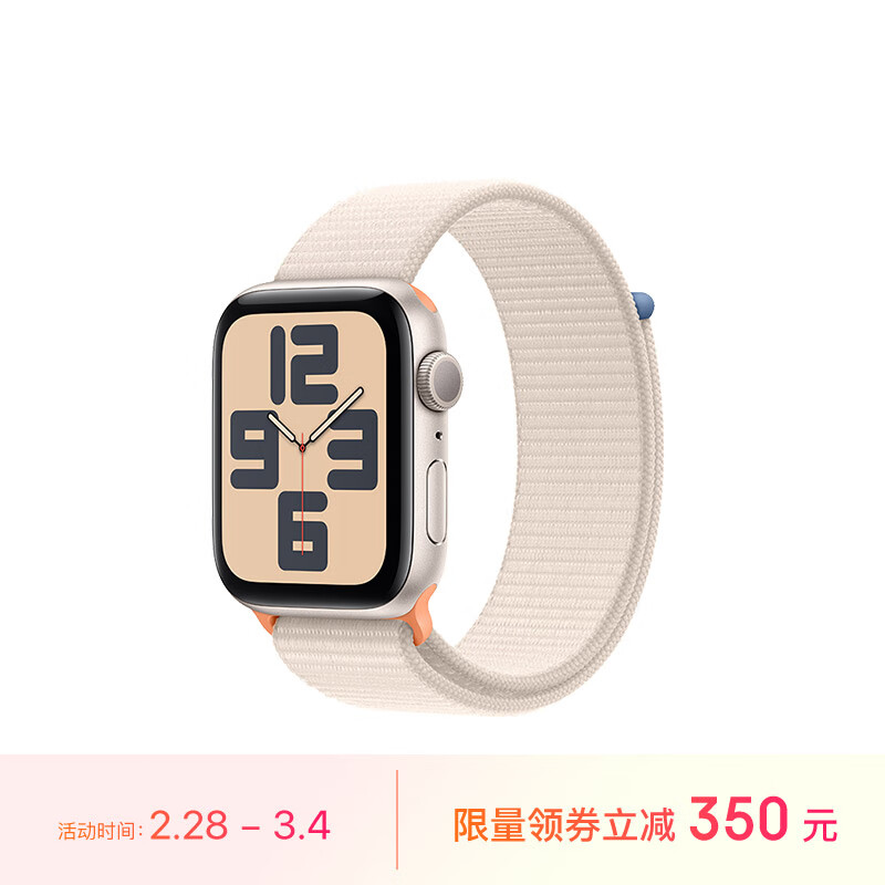Apple/苹果 Watch SE 2023款智能手表GPS款44毫米星光色铝金属表壳星光色回环式运动型表带 MRE63CH/A价格:2199.00元!