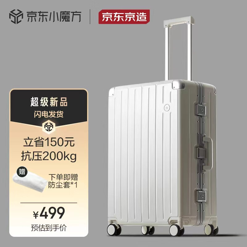 京东京造无界铝框26英寸行李箱男女 旅行箱密码箱大容量皮箱学生 云海白价格:649.00元!