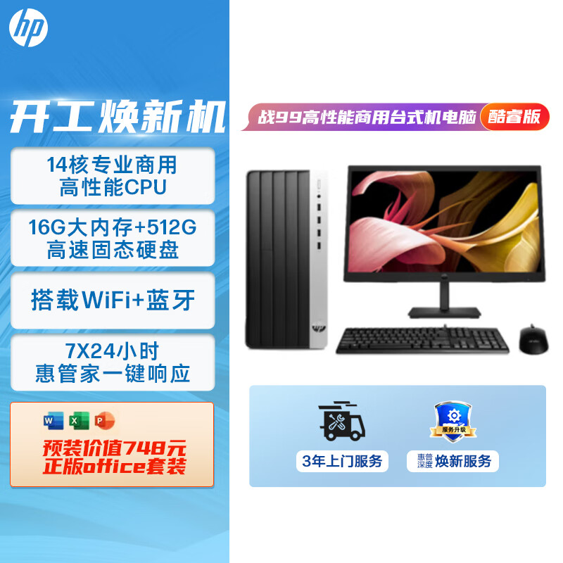惠普(HP)战99 台式电脑主机(酷睿13代i5-13500 16G 512G)21.45英寸显示器 WiFi 蓝牙 14核高性能CPU价格:4149.00元!