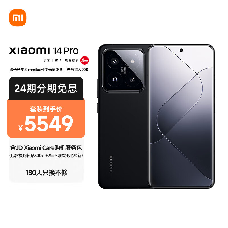 小米14Pro 徕卡可变光圈镜头 光影猎人900 小米澎湃OS 骁龙8Gen3 16+512 黑色 红米手机 5G[MI Care套装版]价格:5549.00元!