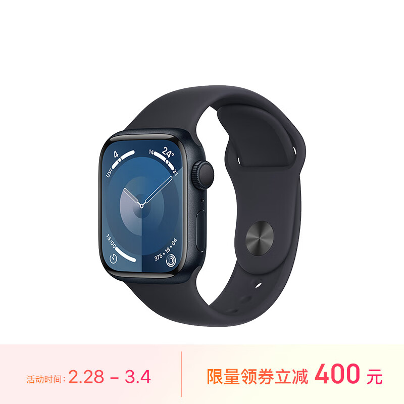 Apple/苹果 Watch Series 9 智能手表GPS款41毫米午夜色铝金属表壳 午夜色运动型表带M/L MR8X3CH/A价格:2999.00元!
