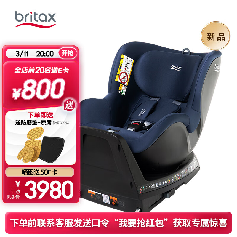 宝得适(BRITAX)宝宝儿童座椅0-4岁isize认证正反安装双面骑士plus月光蓝价格:3980.00元!