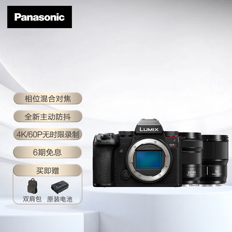 松下S5M2(20-60mm+50mm)(Panasonic)S5二代 全画幅微单相机 约2420万有效像素 新相位混合对焦价格:15798.00元!