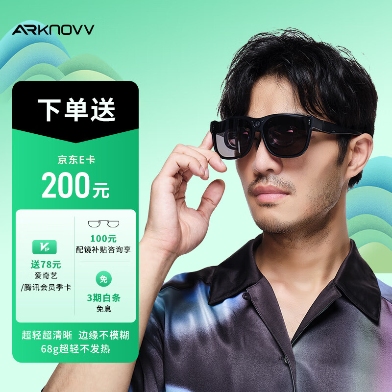 ARknovv A1 智能眼镜 深度融合AI的AR眼镜 可调节电致变色便携XR眼镜 非VR眼镜一体机 黑色 小号戒托套装价格:2988.00元!