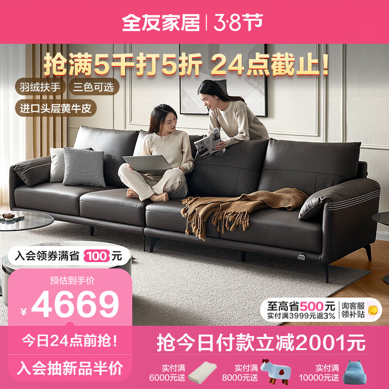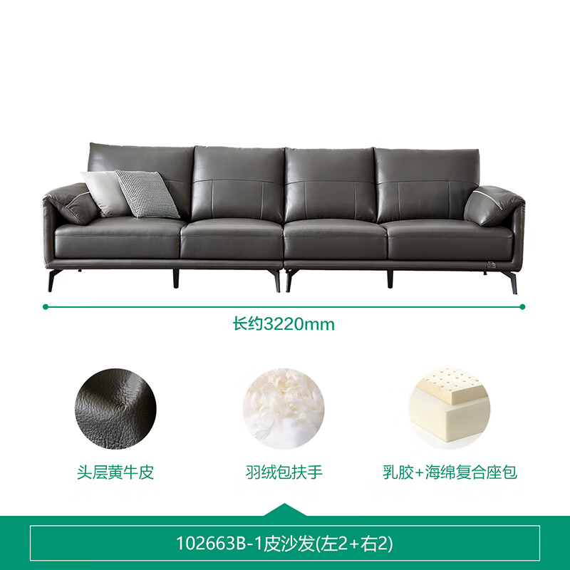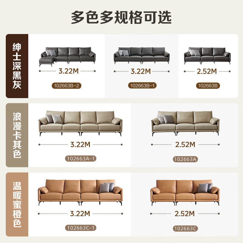 全友家居 意式极简真皮沙发客厅网红轻奢风直排一字沙发小户型102663价格:6670.00元!