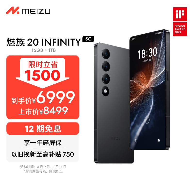 魅族(MEIZU)20 INFINITY无界版 骁龙8Gen2 Flyme系统 2K+臻彩屏 5G游戏学生拍照 领克手机域 星辰黑 16GB+1TB价格:6999.00元!