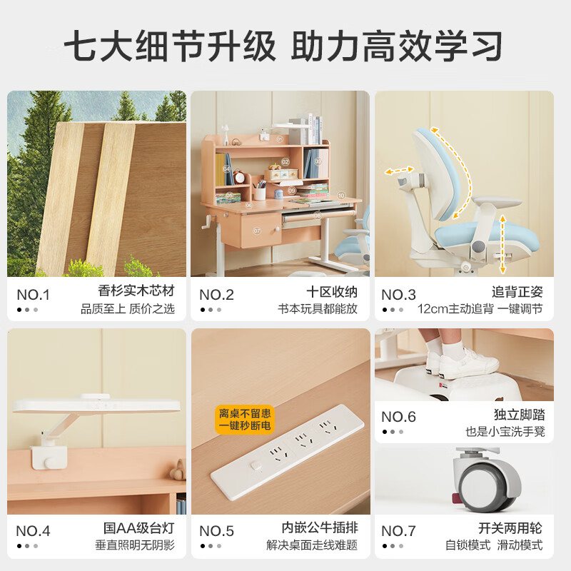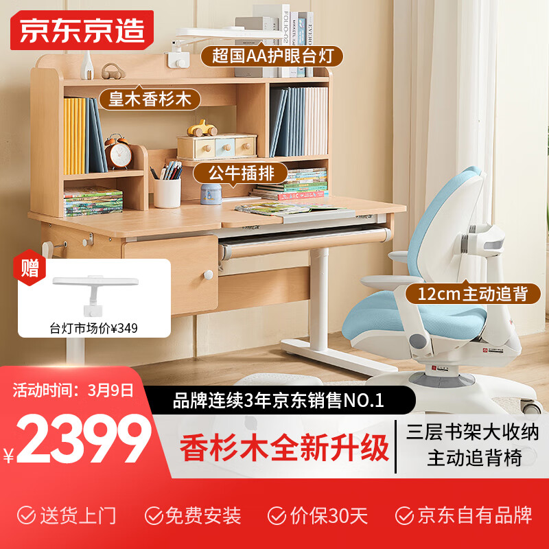 京东京造儿童书桌学习桌椅套装写字桌【香杉实木 AA级台灯】1.2m蓝价格:2599.00元!