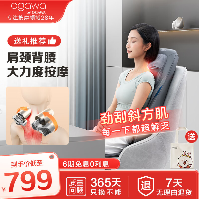 奥佳华(OGAWA)按摩垫颈椎全身按摩器家用腰部按摩椅躺垫腰椎肩颈按摩靠垫颈部按摩送长辈生日礼物舒揉师OG-1205 山雾灰价格:1699.00元!