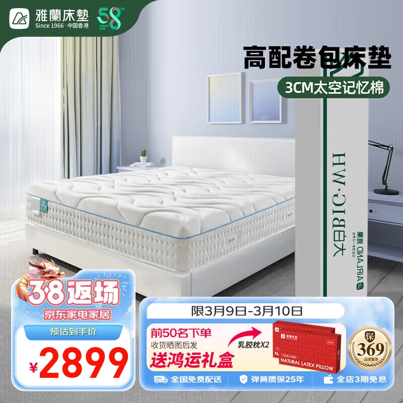 雅兰国民家居床垫慢回弹记忆棉真空卷包独袋弹簧床垫 大白 2*2米价格:3899.00元!