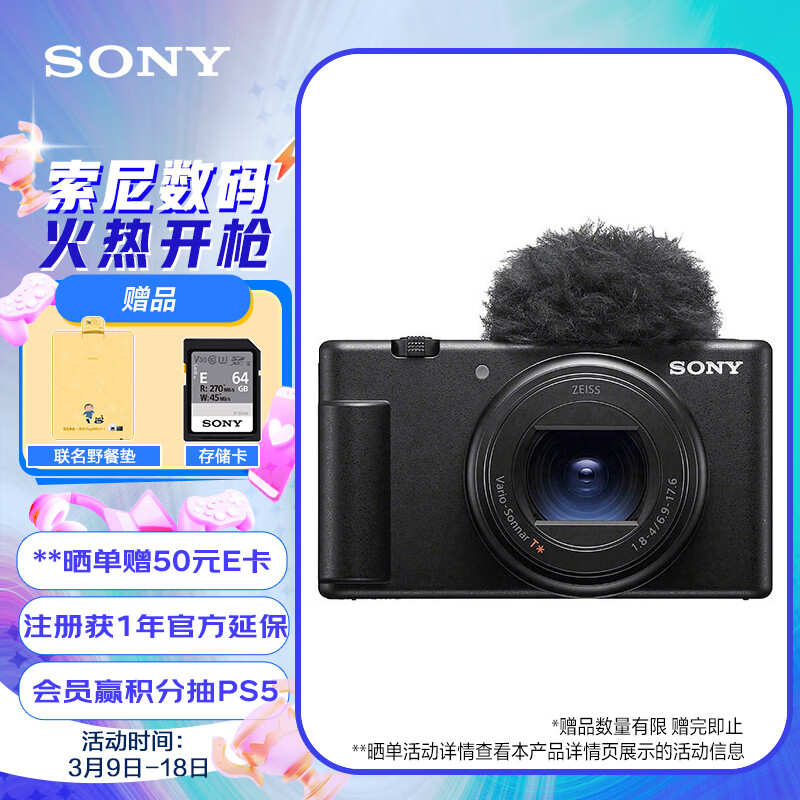 索尼(SONY)ZV-1 II 二代数码相机 Vlog相机/4K视频/超广角/大光圈 黑色(ZV-1M2/ZV1M2/ZV1 II/ZV1二代)价格:5099.00元!