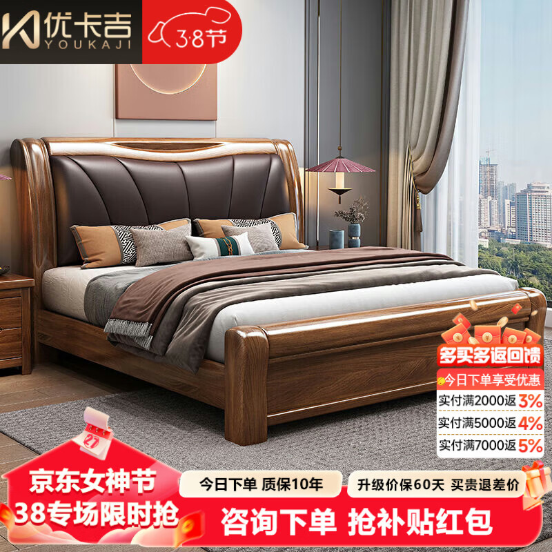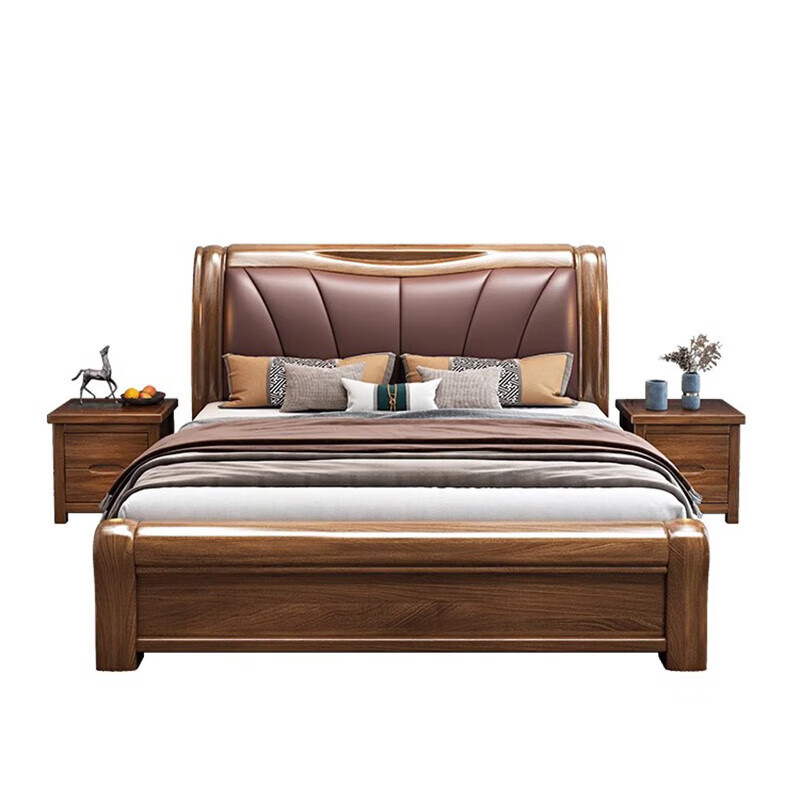 优卡吉胡桃木新中式主卧双人床软包储物床MJ-2201# 1.5米箱框床+床垫价格:3799.00元!