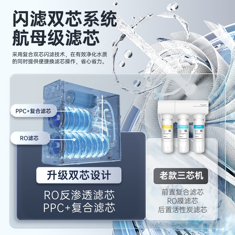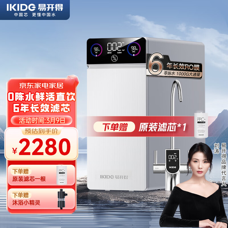 易开得银兔净水器家用厨房1000G大通量6年RO反渗透厨下式净水机自来水饮水直饮一体水龙头过滤器2.6L/分价格:2230.00元!