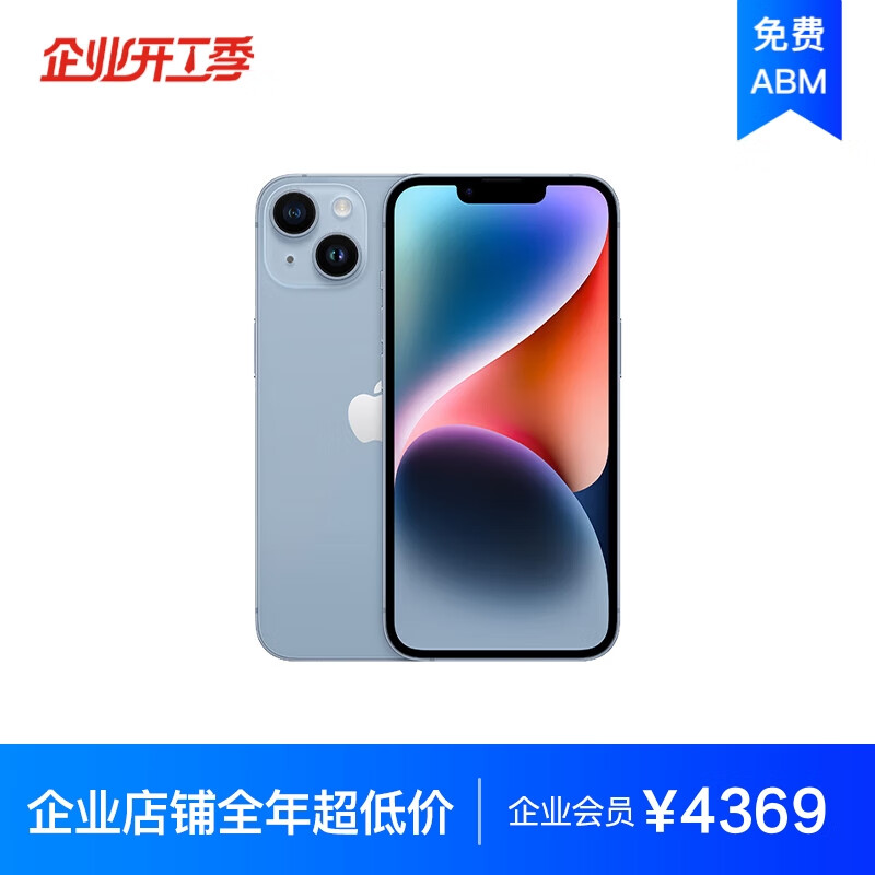 Apple iPhone 14 128GB 蓝色A2884手机 支持移动联通电信5G MPVG3CH/A【企业客户专享】价格:4659.00元!