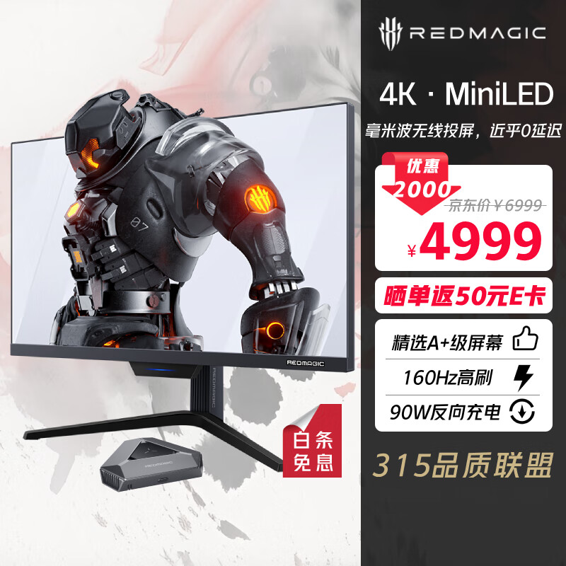 努比亚(nubia)红魔电竞显示器4K无线投屏版 27英寸 MiniLED 高清液晶160Hz高刷 可壁挂 电竞游戏办公显示屏价格:6999.00元!