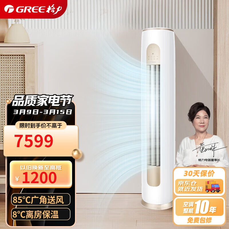 格力(GREE)3匹 京桂II 新一级能效 变频冷暖 净菌自洁 立柜式空调柜机 KFR-72LW/(72587)FNhAd-B1(JDWIFI)价格:7599.00元!