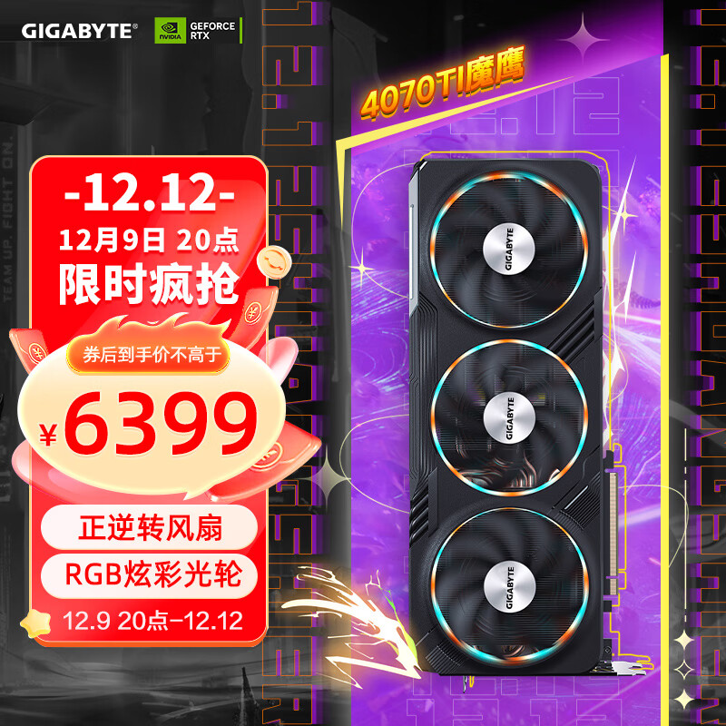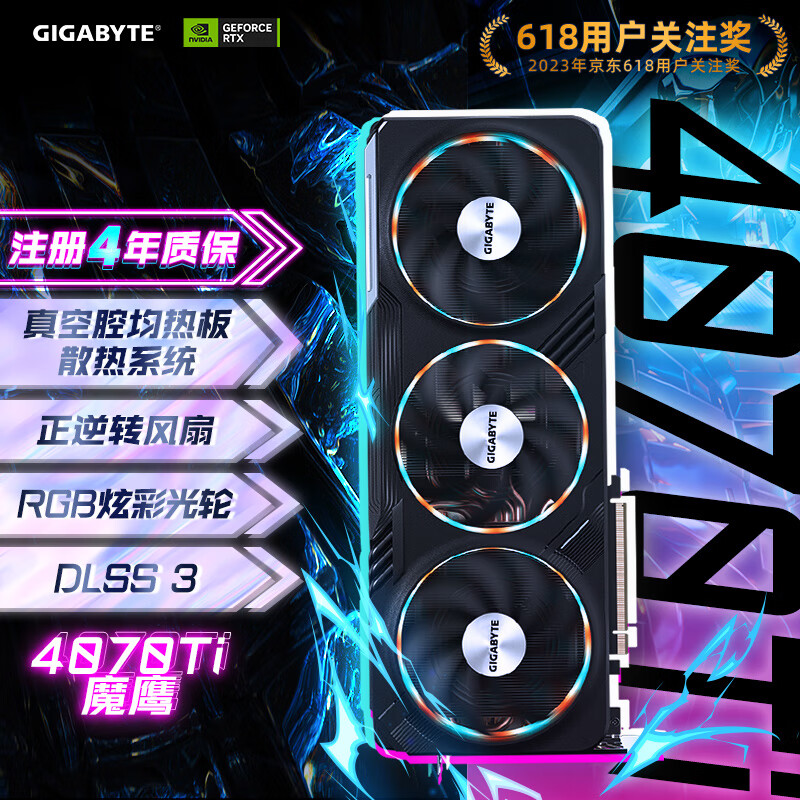 技嘉(GIGABYTE)魔鹰 GeForce RTX 4070TI显卡 Gaming OC 12G 电竞游戏专业独立显卡支持4K【注册四年保】价格:6699.00元!