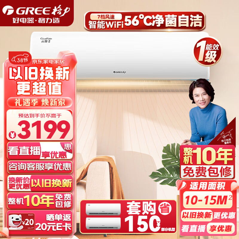 格力(GREE)空调挂机云锦II 新一级能效 变频冷暖除湿自清洁 智能wifi光敏传感大1匹挂机KFR-26GW/NhAd1BAj价格:3199.00元!