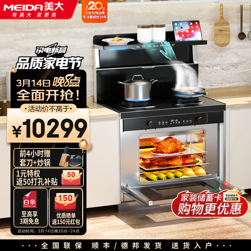 美大(Meida)集成灶蒸烤一体V9-ZK集成一体灶 升级款智能双变频侧吸下排燃气灶蒸烤箱(液化气)价格:10299.00元!