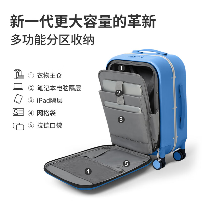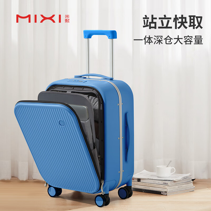 米熙前开盖铝框箱拉杆箱女行李箱男万向轮密码旅行箱24英寸克莱茵蓝70价格:749.00元!
