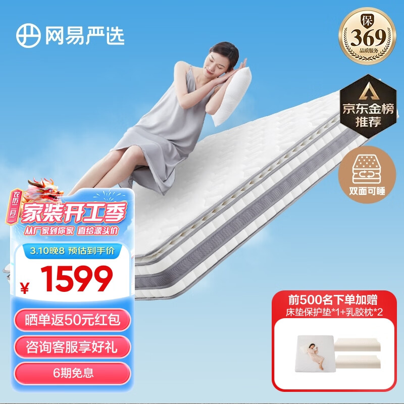 网易严选AB面弹簧床垫1.5*2米 乳胶床垫 奢睡款 抑菌防螨 独袋弹簧价格:1799.00元!