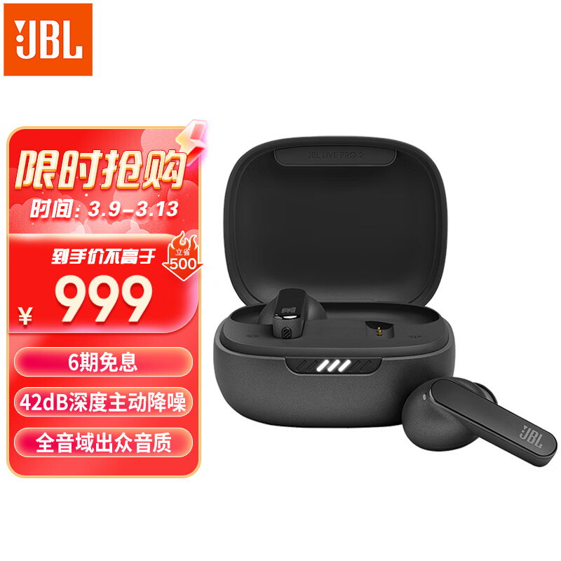 JBL LIVE PRO2真无线入耳式蓝牙耳机 40dB深度主动降噪 高音质音乐游戏运动耳机 苹果安卓通用 黑色价格:1499.00元!